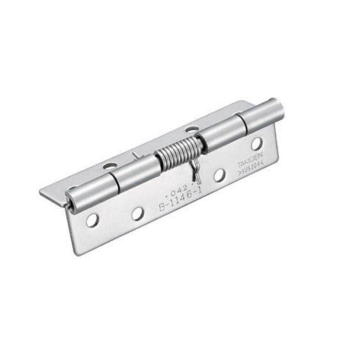 Our Stainless Steel Hinges with Springs are designed to provide superior durability and functionality for various industrial applications. Made from corrosion-resistant stainless steel, specifically cold-rolled stainless steel plate (SUS304), these hinges are built to withstand harsh environments. The hinges feature a B-1046 power spring pressure type, ensuring reliable performance and smooth operation. With a gloss barrel polishing finish, they not only provide excellent functionality but also add a touch of aesthetic appeal to your projects. These hinges are commonly used in ships, vehicles, and food machines, making them a versatile choice for a wide range of industrial needs. Please note that the standard product comes with a hole.